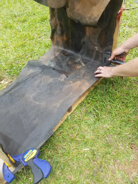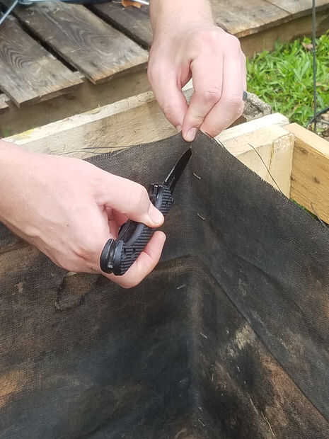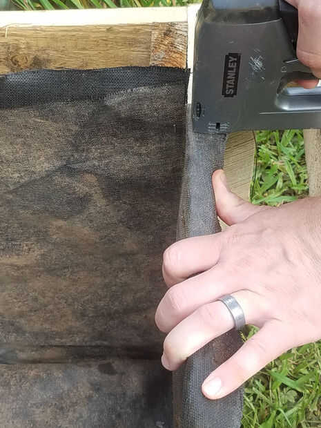 Me olvidaba obtener imágenes de todo el proceso de plástico grapado, pero chicos tienes la imagen. Ajustar libremente su cubrir dentro de su marco y sin apretar la abrazadera. Grapa a lo largo de una esquina y tire un poco tenso a la otra esquina y sujetar. Si no está seguro de la seguridad de sus plataformas, aconsejo sólo engrapado a lo largo de la parte superior e inferior de la cama elevada, para evitar hacer pasos para contaminantes para lixiviar en el suelo. Tuve algunos retazos gratis de paisajismo tela que reconstruye en mina. Quiere dejar una pulgada o más margen en la parte superior. Se necesita de exceso en la parte inferior para proteger la madera contra microbios que se descomponen la madera más rápido, pero no te preocupes si tienes aparentemente demasiado exceso. Se puede ver en la tercer imagen que doblé mi exceso en la parte inferior, una vez que lo entregaron en su lugar. Si no tienes un montón de exceso y quieres ser más a fondo, usted puede poner una hoja de la tela del paisaje en la parte inferior para ayudar a proteger contra las malas hierbas, pero probablemente no hacen a través de la profundidad del suelo iremos añadiendo de todos modos. No preocuparse de esa brecha en la mía. No poner plástico en la parte inferior, pero si quiere, no se olvide de meter agujeros para el drenaje de agua. Mis canteros tienen más claros que este uno, y no he visto ninguna maleza en ellos después de 3 meses. Cortar las esquinas del plástico, de modo que se pueden doblar los bordes sobre el borde de la madera. Esto ayudará la madera último más de largo y también el borde del plástico fuera del camino, donde no Haz capturado y Ripeado. Les de la grapa hacia abajo.