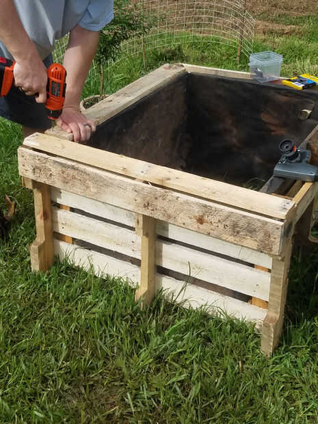 Ahora, los tome dos (cuatro si tus plataformas tenían un número impar de listones en la parte superior) de los listones que hemos reservado antes, los en la parte superior de la cama elevada para terminarlo Instale y ofrecen una superficie para inclinarse contra mientras atendía su jardín. Fijación en la veta no es óptimo, pero en esta aplicación, va a estar bien, sólo asegúrate de poner un poco de ángulo en los tornillos para una conexión más segura. Este paso es muy recomendable. Lo no hice con mis canteros porque no podía con éxito quitar los listones de la parte inferior de las paletas sin destruirlos, ya que tenían tantos clavos en ellos. Es más difícil inclinarse contra aquellos. Puesto que sólo tenía dos listones para esto, sólo intenté decidir de que lados sería hacer más obra. Puedo encontrar algo más de madera para completar todas mis camas de esta forma, como se ve mucho mejor y menos pallety.