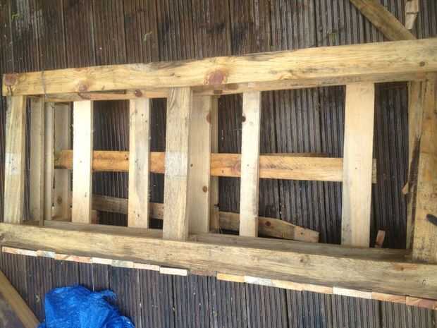 Voltee hacia abajo y atornillar unas piezas en la horizontal y vertical para dar apoyo a las lonas cuando se pone pulg realmente no tiene que ser perfecto, el peso del suelo pasar las lonas grandes lagunas pero ahorrar en tener tanta tierra pero no escatima en no tener suficiente.
