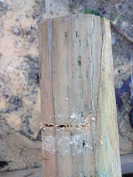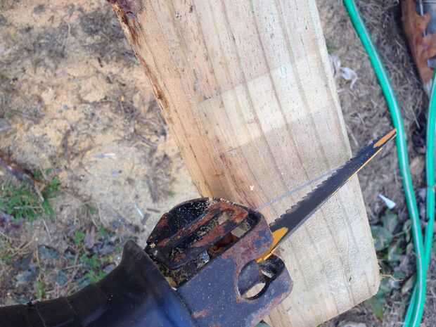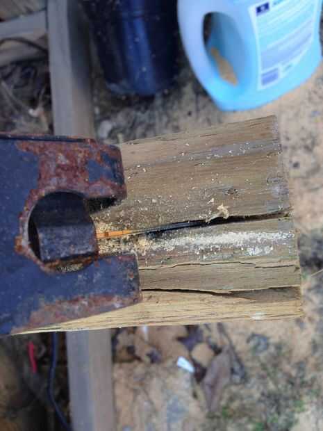 Cortan la madera en la línea que marcó aproximadamente a la mitad.
