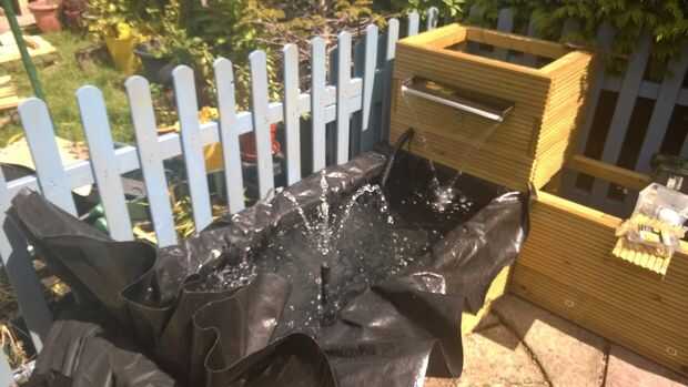 Ahora la cascada es para arriba y funcionando, ahora es un buen momento para asegurarse de que el derrame de la cascada no aterrizará en la nivelación cuando está en su lugar, como esta conduciría a salpicaduras excesivas.