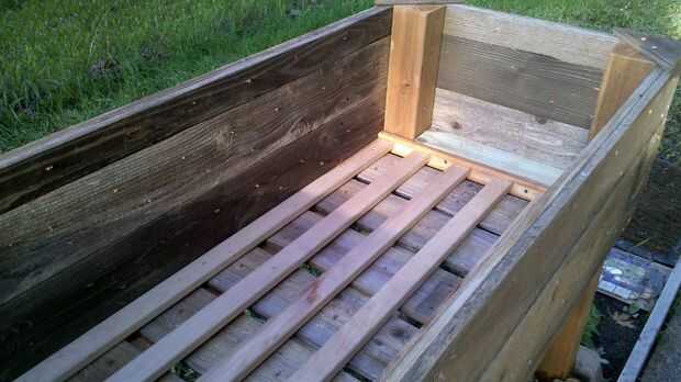 Yo estaba charlando con un amigo sobre el jardín de la hierba que hice este fin de semana, y dijo que sus padres pasaron una impía cantidad de dinero para comprar un "VegTrug" (una cosa Europea, http://www.vegtrug.com/) que es básicamente un marco de futon en una forma de "V" con listones de madera más anchas. Ahorré otra estructura de futón con los listones más amplios así que pude reutilizar, y puedo intento hacer otra cama elevado jardín en ese estilo de "V" para ver cómo se comparan.