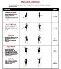 Calentamiento ejercicios puede consistir en: correr, nadar, ciclismo, caminar, ejercicios de correr o de estiramiento y fuerza. Estos ejercicios se utilizan para obtener el fluir de la sangre, aumentar el calor corporal y tasa de calor, que calienta los músculos y preparar para que se necesitan para la actividad. Ejercicios explosivos incluyen ejercicios de sprint o saltos, que ayudan a preparar el cuerpo para movimientos rápidos. Estos ejercicios sólo necesitan hacerlo una vez.