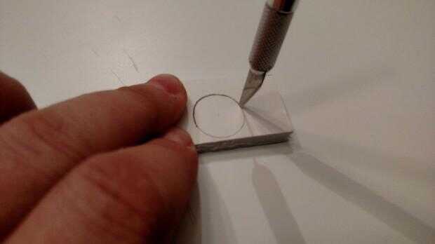 Consejo: Para los círculos más pequeños, usé un cuchillo X-acto y suavemente mueve el cuchillo hacia arriba y hacia abajo como una sierra pequeña para cortar los círculos, y luego recortar con el exceso de material con las tijeras.