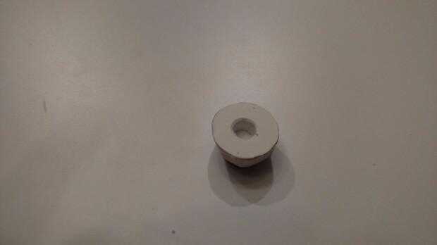 5. Una vez que las formas de cortar, aplique una pequeña cantidad de pegamento a la pieza de la rosquilla en forma de cerca el interior hueco. Pegue la forma de Rosco a la pieza más pequeña para crear la Copa.