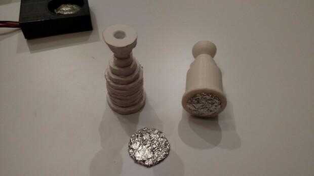 Corte un pedazo pequeño de papel de aluminio (100 x 100 mm) y enrollar en una bola suelta.