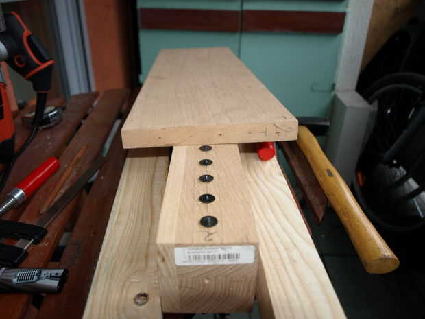 Usé tarugos de 8 mm, donde tenía madera gruesa de 2 cm, y tacos de 6 mm, donde había madera espesor de 1.8 mm.