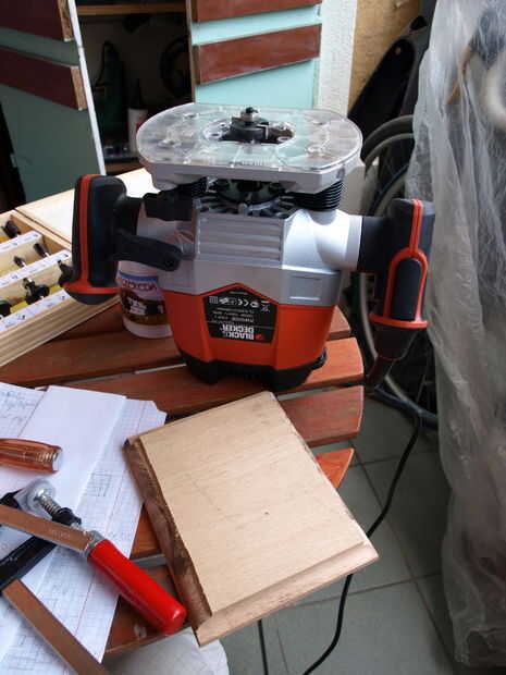 Así que hice una pieza test para ver que diseño me gusta en la parte superior de mi mesa. Hice 4 bordes. Nuevo: Consulte el manual de usuario sobre las brocas, porque dependiendo de su tamaño: tienes que elegir diferente velocidad para ruta con.