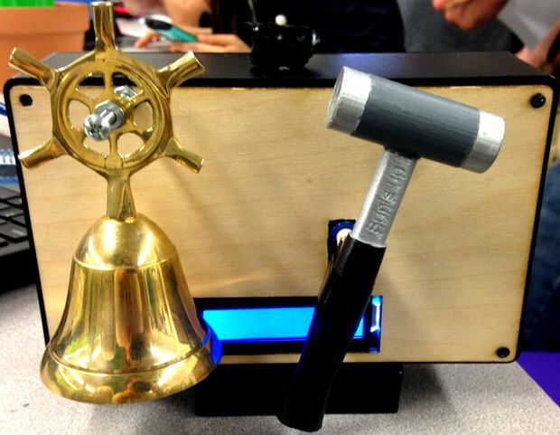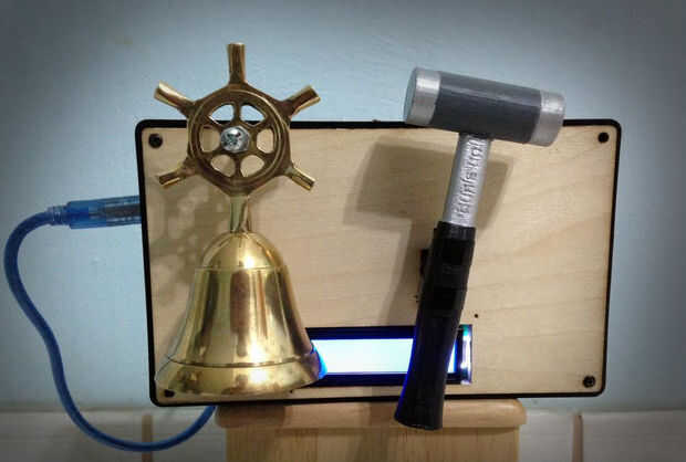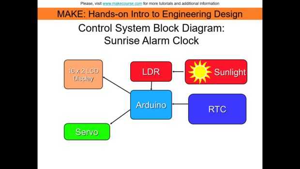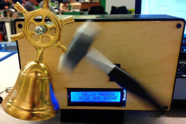 Este reloj de alarma está diseñado para que pueda levantarse con el sol. Cuando la luz de afuera se detecta por la fotorresistencia, entonces activa un servo con un martillo unido a él. El martillo se giro de 60 grados y golpear la campana dos veces para despertarlo.