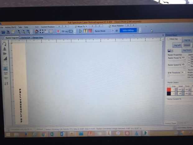 He creado mi contorno deseado y el texto "Tire usted mismo para arriba" en Adobe Illustrator. Cuando yo era feliz con lo que tenía, "" el diseño impreso al láser de la serie H-FLS vía Retina graba.