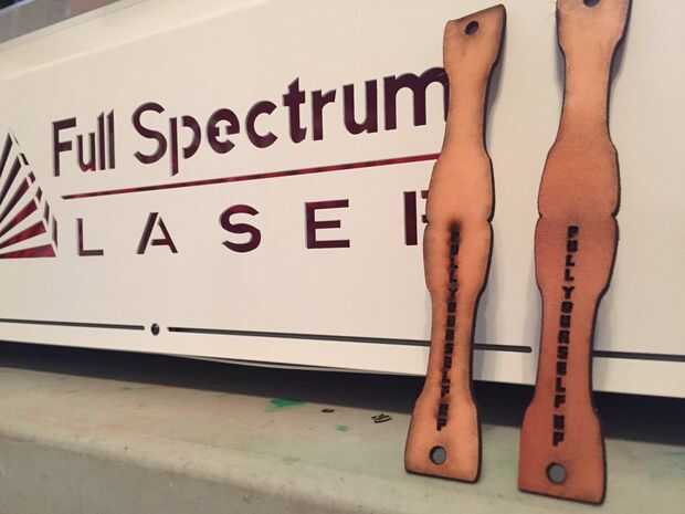 Una vez que han grabado el texto ahora es el momento para saltar a la pestaña de corte y cortar las líneas de vector. Otra vez, utilicé 50% velocidad y 100% de potencia. Quería asegurarse de que tengo todo el camino a través de la piel como esto era la primera vez que corté el cuero de este láser. Lo hizo muy bien con estos ajustes.