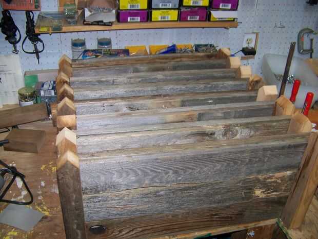 Construí un montón de estas camas en una variedad de tamaños. Para los más grandes I doble apiladas 2 x 6, los recibí de mi padre y los recibí de techo viejo de mi compañero de trabajo. En las camas más pequeñas he utilizado cerca barras apilan tres altas y dos tableros de espesor.
