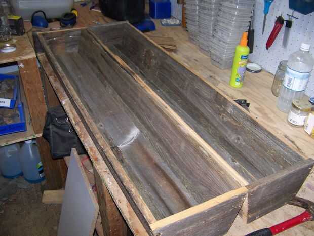 Estas son las jardineras muy simple, sólo dos extremo piezas y tres tableros principales entre ellos, con ganchos en los extremos para colgar cadenas de. No tienes que conseguir como de lujo como yo, pero quería estos nuevos para que coincida con la edad. I madera pegado estos juntos, pero se olvidó de que un seguimiento con unos tornillos o clavos para mayor resistencia y terminó con uno de ellos cayendo en una lluvia fuerte.