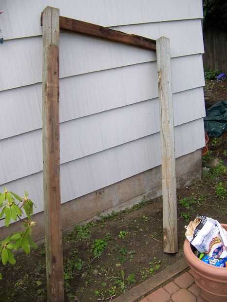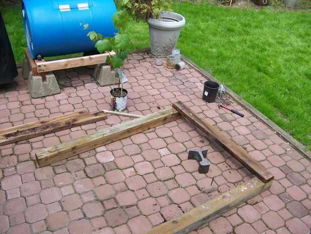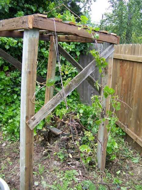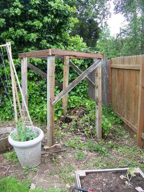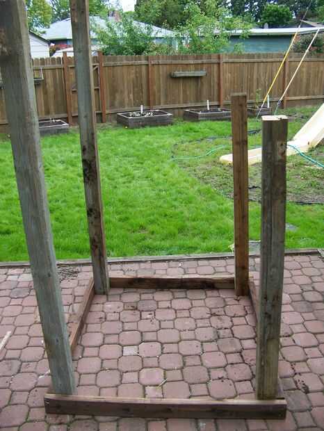 Nuevamente, se trata de una construcción muy simple, y ya que no quiero hacerlo permanente incluso no enterrar los postes. Es sólo cuatro piernas que mantienen juntos en la parte superior con 2 x 4, con un par de transversal de barras para un poco de mayor robustez. La uva parece como hasta ahora, por lo que no me importa que tipo de feo!