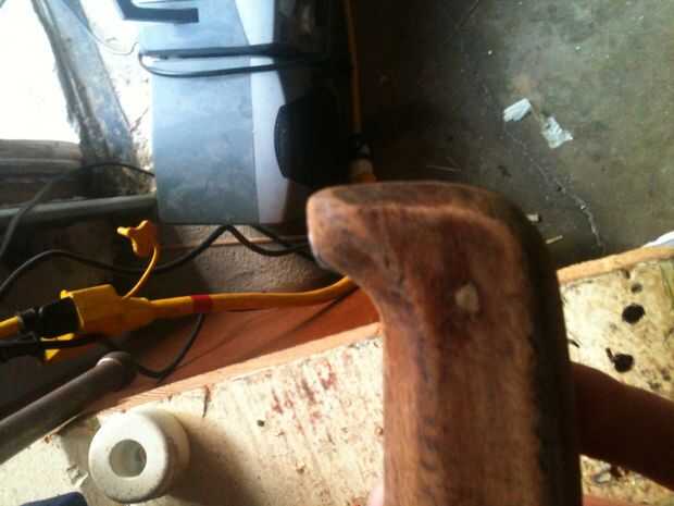 7. seque su empuñadura y cinta apagado. Suavemente la arena la manija en el suelo lo suficiente como para la capa superior de la mancha al salir. Tenga cuidado de no modificar el mango enarenando apagado demasiado, sin embargo. Aplique cuidadosamente mancha de madera para el mango. Hago normalmente dos capas y luego sellarlo con un poliuretano.