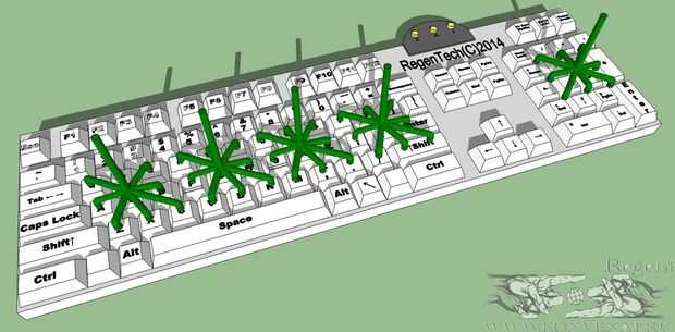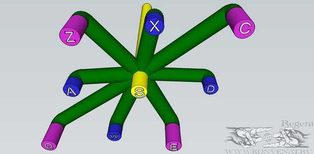Parece que se puede hacer con el teclado. Qué fabricantes no sólo creen... intentó hacerlos más delgados, cambiaron el material de fabricación. Había metal, botones de madera y mucho más. Una cosa queda sin cambios - este teclado. Símbolos de alfabetos inglés y rusos están siempre dispuestas en un cierto orden y su posición no cambia. Por supuesto, todos los usuarios durante mucho tiempo han sido acostumbrados a escribiendo en un teclado. Cambio el arreglo de letras y plagado de irracional comercialización fracaso, pocas personas de acuerdo a la readaptación en un teclado no estándar. Traté de cambiar el enfoque en el teclado como un "tablero con las teclas". Todos son perfectamente se ve como un joystick. De hecho - es un mini teclado. Estructuralmente, el joystick es un panel de control con teclas. Por encima de ellos, coloque la palanca en bola común. Cuando la palanca se inclina, por ejemplo, uno de los empujadores, que son dispuestos n el extremo de la palanca - prensas en la clave que es responsable por el movimiento hacia adelante. Del mismo modo, trabajo y otras claves, cuando se gira la palanca del joystick en una dirección u otra. Los modelos más recientes son capaces de reconocer no sólo la inclinación del brazo, pero también la fuerza que se aplica al usuario, control de tal modo la aceleración puede ser logrado, por ejemplo, en un simulador de carreras. Tomamos por ejemplo un teclado convencional, establece la construcción de plástico. Figura representa esquemáticamente el diseño sólo alfabéticos caracteres y el teclado numérico. Cada diseño tiene nueve empujadores. Considerar en detalle el diseño, que es responsable de las pulsaciones de tecla: Q, W, E, A, S, D, Z, X, C. la figura muestra una primera encarnación de un empujador de diferentes longitudes. Empujadores de las teclas Q, Z, C, E marcado en la figura púrpura, más marcado en azul empujadores para símbolos A, X, D, w el. Un símbolo de émbolo S es más largo que todos los demás. Esto se hace para que al pulsar la palanca con el fin de imprimir el carácter «S» otros pulsadores que no pulsado Letras adyacentes. Lo mismo ocurre con el grupo de símbolos púrpura. El más difícil era resolver el problema pulsando los símbolos del grupo azul, grupo empujadores púrpura al intentar enviar un empujador en el símbolo del grupo azul. Cambió la longitud de los grupos de pulsadores. Grupo azul se convirtió en más largo y morado fue acortado. Es en este diseño de configuración para adaptarse a un teclado estándar. Sin embargo, para el producto comercial completo se crea mejor desde cero en lugar de actualizar el teclado estándar. La superficie plana tiene un caracteres de palanca 4 para las teclas de números uno y dos duplicados para el principal (espacio, pasar, entrar, alt, ctrl, del, etc.). Además, puede Agregar una teclas del panel táctil para funciones adicionales. Finalmente consiguió un concepto, que se presenta a continuación. Si usted dibuja el maquetador, como enfoque de desarrollo en términos de ergonomía y medicina, obtenemos un dispositivo funcional y conveniente para introducir información en la computadora. Las ventajas indudables de este dispositivo son las siguientes:-el número mínimo de movimientos en las articulaciones de los dedos. -Sustitución de los movimientos habituales dedos en el teclado para movimientos en diferentes direcciones la palanca del joystick. -Nuevo diseño futuro. -El costo mínimo de producción, mediante el uso de teclados desechados con alteraciones mínimas. -Palancas de mando pueden ser móviles sobre la superficie de la unidad principal. Para hacer esto, usted puede proporcionar cada joystick inductivo acoplamiento entre él y el teclado de la unidad principal de carga inalámbrica. Una fijación en la base puede ser formada por imanes o alistonada. -Prevención de enfermedades de las articulaciones debido a los cambios en las trayectorias de las articulaciones. -Palancas de mando se puede controlar mucho más precisa entrada de texto por ejemplo en las industrias sucias a las condiciones ambientales nocivas que requieren usar guantes de protección. En este caso, la tecla se inexacta y cuando el método de entrada de la palanca puede reducir la probabilidad de que un deslizamiento de casi cero. -Utilización de un sistema plástico de la plantilla y guía - puede conseguir orientación de alta precisión de un empuje en la clave. Esto ayudará a reducir la probabilidad de errores en el juego de caracteres. -La capacidad para imprimir a un lado, cambiar la posición de la palanca de mando para reducir el movimiento de la articulación del codo y escribir texto empuje un poco las palancas en la parte derecha de las letras. -Usted puede cambiar la función de cada tecla en su gracias a un software especial. Así - un golpe de teclado puede cambiar el teclado en el modo de texto, por ejemplo, juegos, publicar un joysticks inalámbricos como confortable para el usuario. -Escalable y funcional capacidad del dispositivo añadiendo joysticks adicionales cambian regulador, etc. - en el hogar, usted puede hacer paradas de proceso de fundición casera de plástico y palancas de mando e instalado en un teclado estándar. RegenTech © 2014 desarrollo, descripción, imagen y la idea básica del concepto perteneciente al administrador www.konvenat.ru enlace al copiar artículos - se requiere.