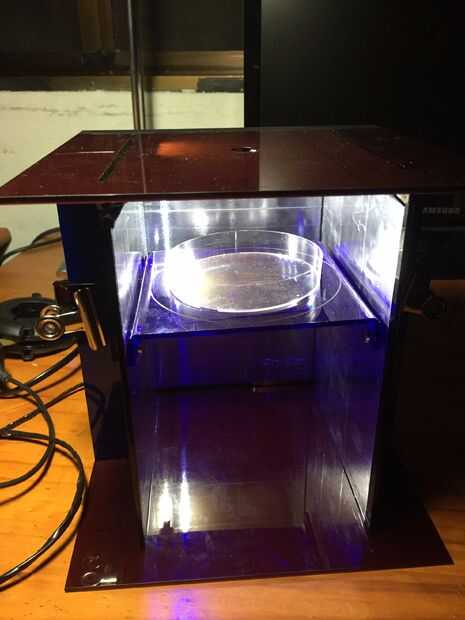 Cultivo de bacterias pueden ser un proceso algo tedioso como descubrí después de hacer algunas bacterias de cultivo. Fue algo divertido que todos los otros procesos se llevaron a cabo con métodos y herramientas especializadas, pero cuando llegó a la grabación de las colonias, el único aparato utilizado fue una negro hoja de papel, un teléfono con cámara y una mano algo temblorosa. Con todos estos combinados, el único producto fue una imagen granulada y blur-ish. Así me lancé a crear un aparato que podría mejorar el proceso.