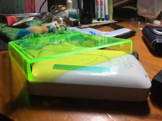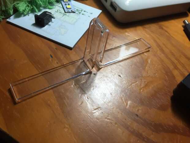 En cuanto a la botella magnética, calentar la zona entre las dos líneas grabadas en el centro de la botella. Luego tome un pedazo de acrílico y doblar la sección climatizada en dos mitades iguales con la pieza de acrílico (espesor de 3mm) entre las dos mitades. Luego las otras dos líneas de las respectivas mitades del calor y doblar en la dirección en un ángulo de 90 grados de oposición. Una vez hecho esto, coloque los imanes en el deslizador y palillo en!