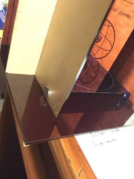 Calentando y doblando a lo largo de la grabado líneas, un "["puede ser formada. Los dos círculos pequeños en los lados que sobresalen será donde se pegan los imanes. Tenga en cuenta que usted pega los imanes en el lado interno de la que sobresalen "piernas". Una vez hecho esto, el escenario está listo para ir!