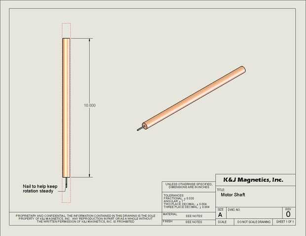 Aunque no es la mayoría perfectamente recta o equilibrado del motor, se utilizó una ½" madera varilla diámetro es 10" de longitud. Varillas de madera como este están comúnmente disponibles en tiendas de mejora de hardware o casa.