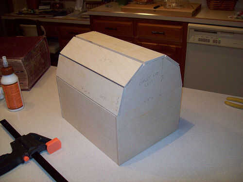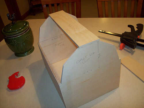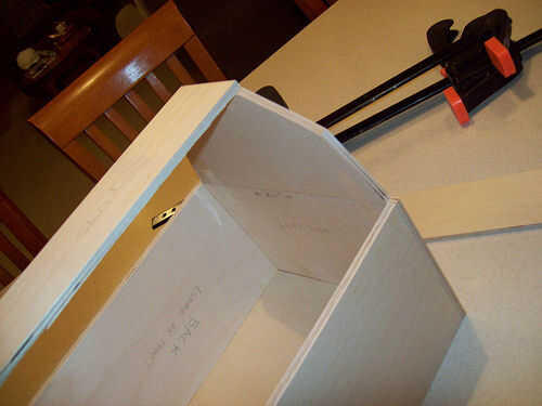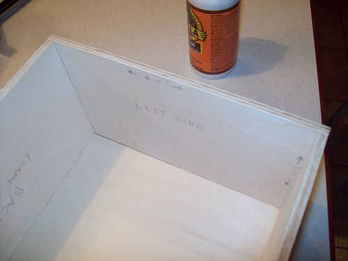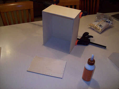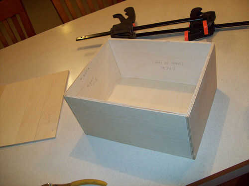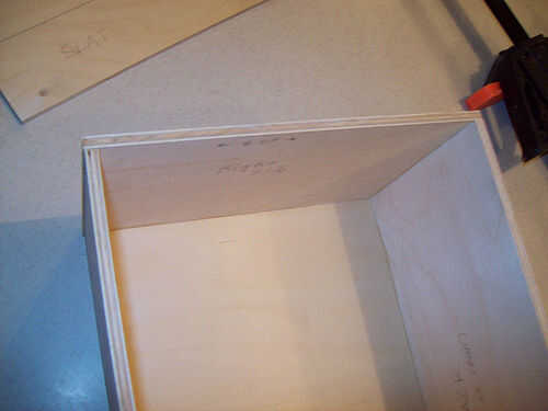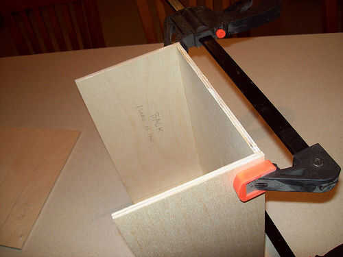 Seguir adelante y utilizar su cola para madera y grapas para conseguir todo lo pegan. Para la tapa no pude sujetar las piezas, por lo que acaba de celebrar las juntas con la mano durante unos minutos hasta que el pegamento se sostendría sin mi ayuda