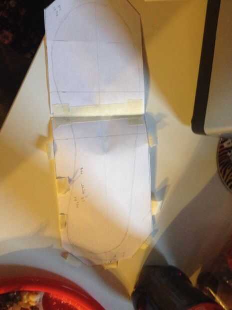 Este es el corazón y la planta del pie (por desgracia, los chistes no hay nada mejores) de esta compilación. Aquí es donde todo el peso de la construcción será descansar, así que es mejor conseguir una madera que sea resistente y espesar lo suficiente para apoyarte. Empecé grabando dos trozos de papel junto, con el fin de obtener una pieza lo suficientemente grande como para que mis pies. Entonces había trazado a pie entonces dibujó un rectángulo alrededor de la forma, dejando espacio para el error y el relleno. Después de esto, tienes que cortar 45,45,90 triángulos de las esquinas. Cómo grandes son, es la preferencia, y lo que le convenga mejor. Finalmente, toman esta forma y luego la corte de la madera