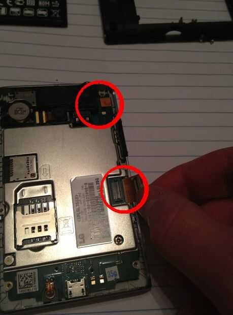 Mirar las dos cosas he circundado. Utilice cuidadosamente un dedo para arrancarlos de sus conectores. Está conectados tipo de como broches de presión. Necesariamente no tienes que desconectar el uno superior, como generalmente se deshace cuando saque la Junta. Saque la Junta despliega como un libro.