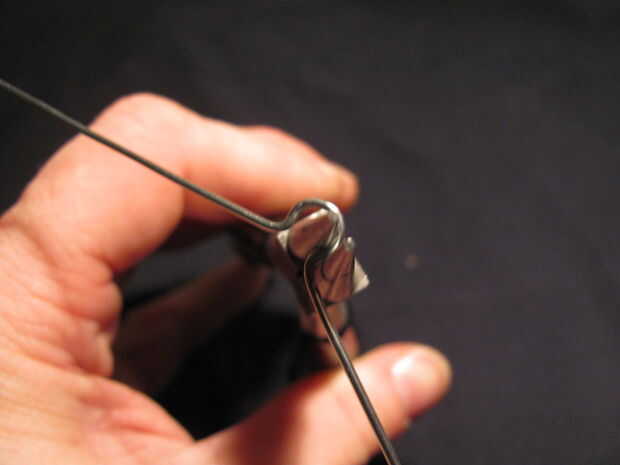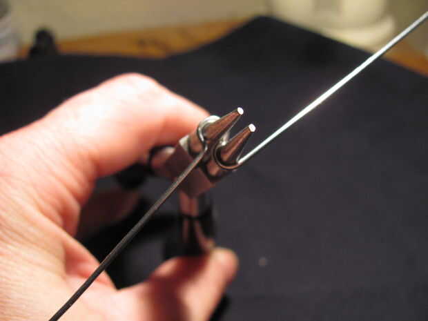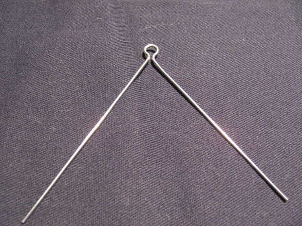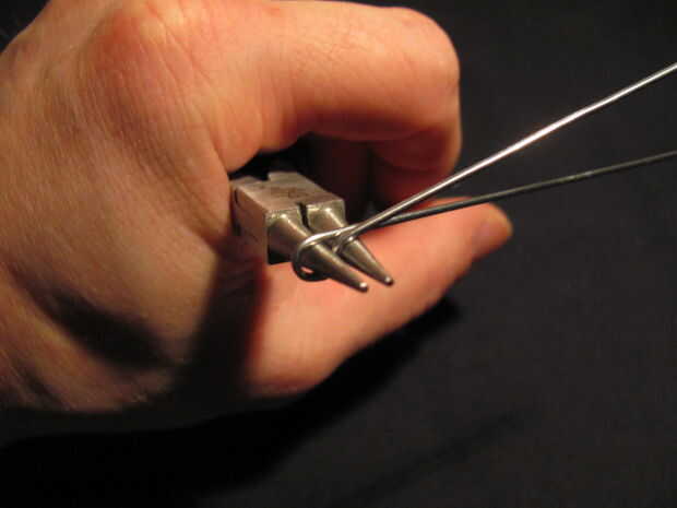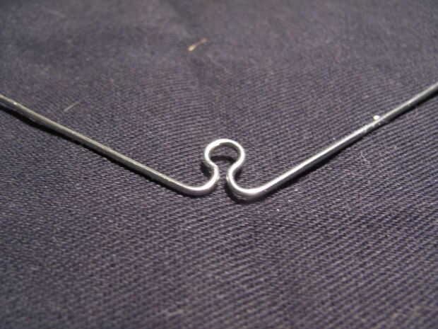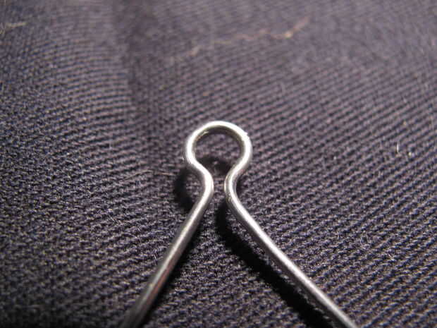 Una vez hecho el bucle centro (cabeza) los extremos libres de su clip se apuntan a un ángulo hacia abajo. Utilizar la marca en tus alicates para doblar en un ángulo hacia arriba.