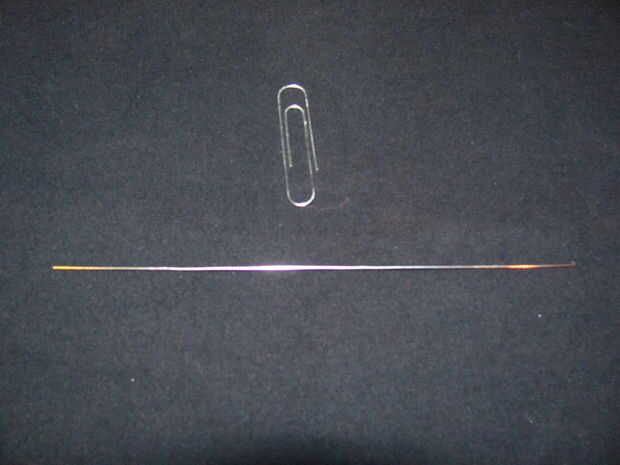 Encontrar el centro de su clip ahora recta y utilizando la marca en tus alicates doblar un lazo en el centro.