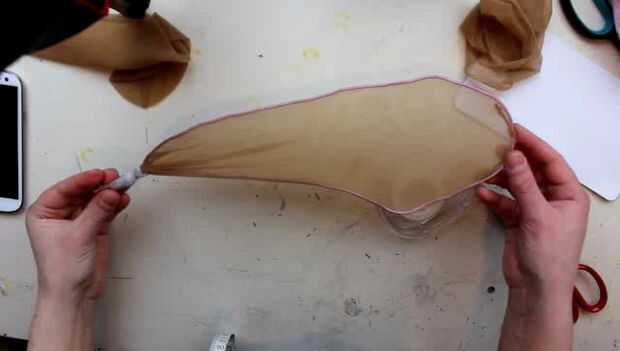 Cubrir cada ala con unas medias de esquileo y asegúrelo en su lugar con más cinta, cortar el exceso.
