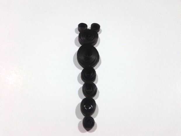 Para los cola hacer cuatro círculos de la mitad la tira de papel (debe ser más pequeños que la cabeza). Y para los ojos uso 1/4 tira de papel. Mantener el centro de los ojos huecos.