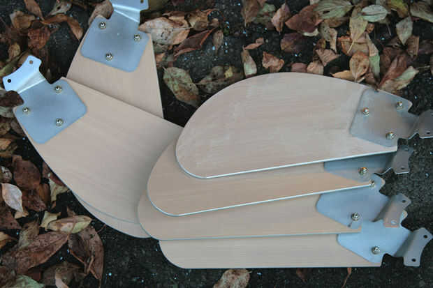 Las alas: la mariposa deportes alas de cuchilla de fan que había desmontado de un fan de la tienda de segunda mano y estaban dispuestos a atornillar simplemente en la parte posterior de la pierna de la tabla. Entonces era un par de noches frente al televisor con una pistola de pegamento caliente y la caja de diversos abalorios y adornos a glam para arriba esas alas.