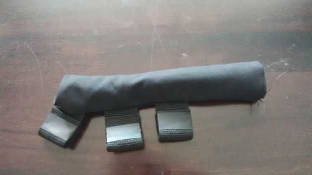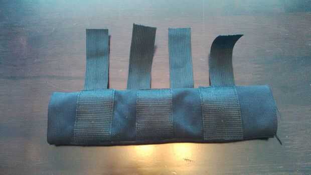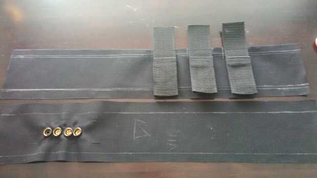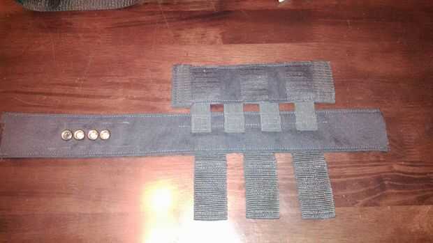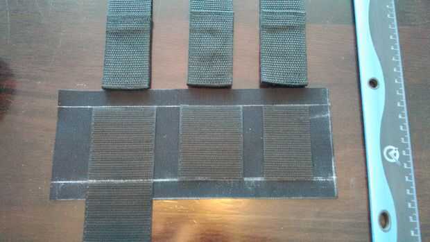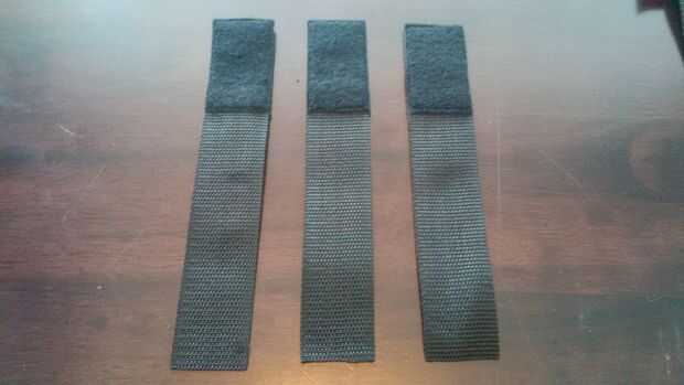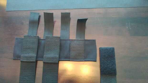 1. el número de puntos de enganche depende totalmente de usted. He seleccionado tres correas de velcro y cuatro correas elásticas para una distribución uniforme de presión sobre el eje del hacha de guerra.