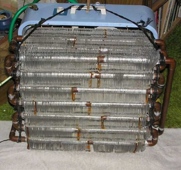 Poco después de mudarse aquí (Montana) noté que el agua de nuestro pozo es realmente frío, menores de 50 grados. Construí este intercambiador de calor para aprovechar esa fuente fría para su uso en la casa en el verano y como subproducto calienta el agua que va al jardín un poco antes de que salga en las plantas ya que las plantas no parecen importarle mucho el agua súper fría. Bueno beneficia alrededor de todo el camino y puesto que yo se bombeo exterior al agua de todos modos el costo sólo es el poder de ejecutar la caja del ventilador que mueve el aire a través de la tubería de cobre.