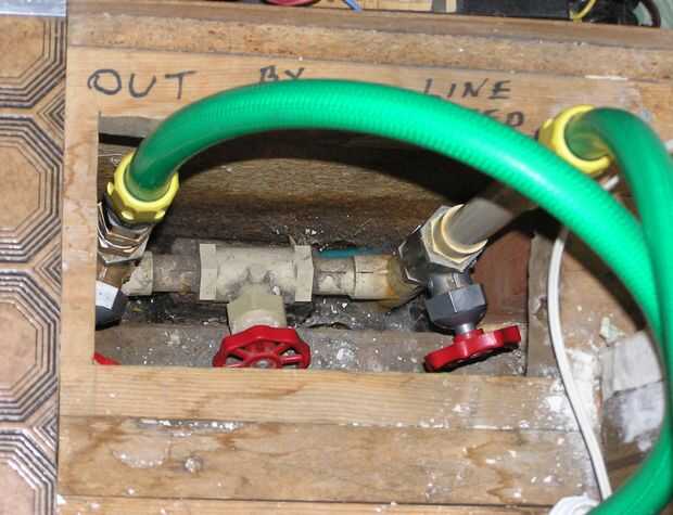 Agregué un tubo alimentador viene de mi tanque de presión y cañerías debajo de la casa directamente a una caja de conexión en el piso. He añadido las válvulas, uno en la entrada y uno en la salida y una válvula de derivación. Luego le siguió el tubo de alimentación hacia el exterior. Sí, si alguien gire la válvula en sin el refrigerador conectado le rocíe agua todo. Pero nunca nadie tiene hasta ahora. La única vez que he tenido una fuga fue cuando intenté utilizando complemento de conectores de manguera. Son convenientes pero escape. Trabajo gran exterior pero no utiliza para esta aplicación.