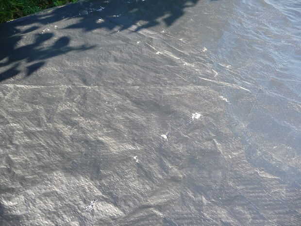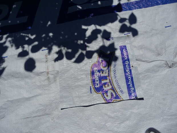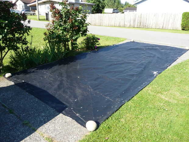 Foto 3: A continuación, gire el lado encerado negro Si no lo has hecho ya. (Suponiendo que lo tiene un lado negro, pero hacen todas las lonas de madera que he visto hasta ahora).