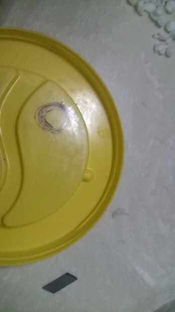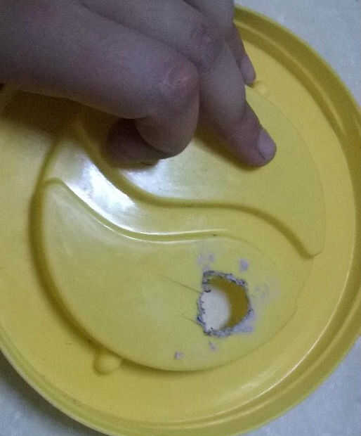 para la fijación de la manguera primer rastro el diámetro del tubo y con ayuda de un cortador corta el círculo. Ahora bien, dividir, cortar el área de 5cm de tubería de 4 piezas .fix la manguera con una pistola de pegamento y cerrar el recipiente