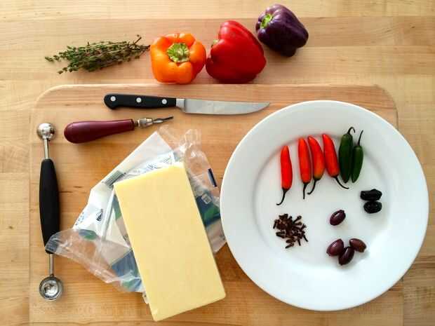 Para decorar los cráneos, que se reúnen una colorida variedad de ingredientes comestibles. Si me voy a derretir los cráneos en la pizza como la gran final, elegir sólo los ingredientes que funcionarán bien en una pizza. A continuación se presentan algunas ideas de ingredientes para la decoración del cráneo: