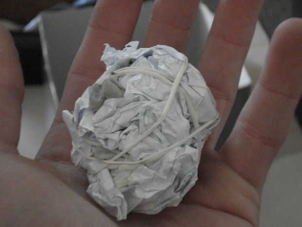 Recoger todas sus gomas y atarlos alrededor de una bola de material, objetos, basura, debrits/etc....