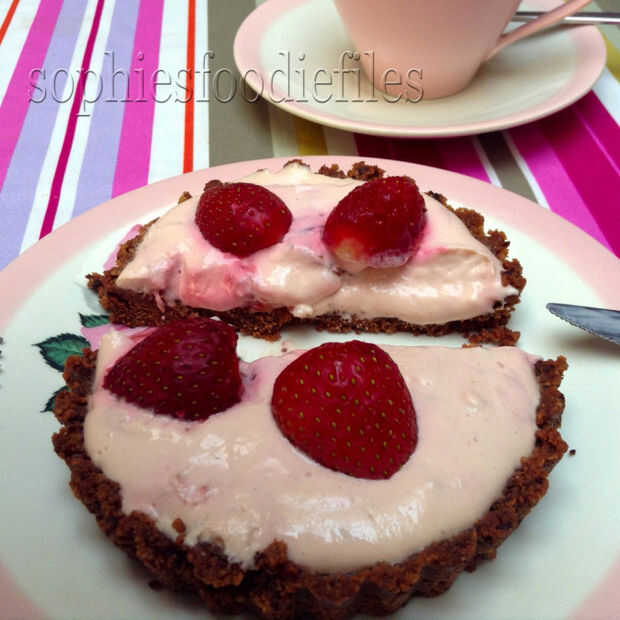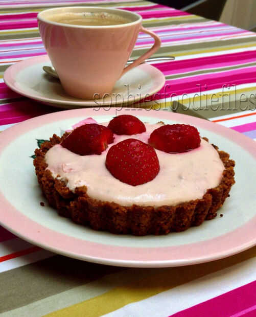 Puso una noche en la nevera y devoró a uno en la tarde! Estos son más sanos, la luz en la boca debido a la combinación de queso crema sin lactosa y baja en grasa y sin lactosa quark. No utilizar mucha azúcar ya sea porque mi casa cultivadas las fresas son perfectamente madura y muy dulce también! La galleta con chispas de chocolate libre de gluten-sin lactosa base tome estas tartaletas a un otro nivel, incluso mejor. :)