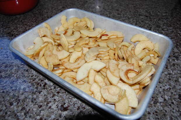 • Verter las manzanas en la bandeja para hornear de 9 x 13