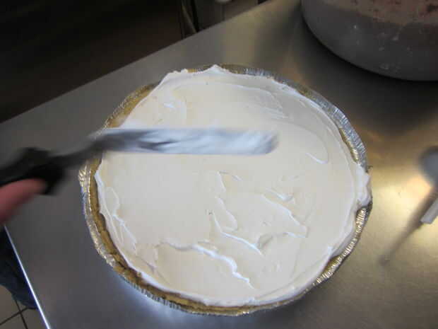 Uno de los pasos más simples. Tomar su helado y relleno en la tarta. Bonita y sencilla.