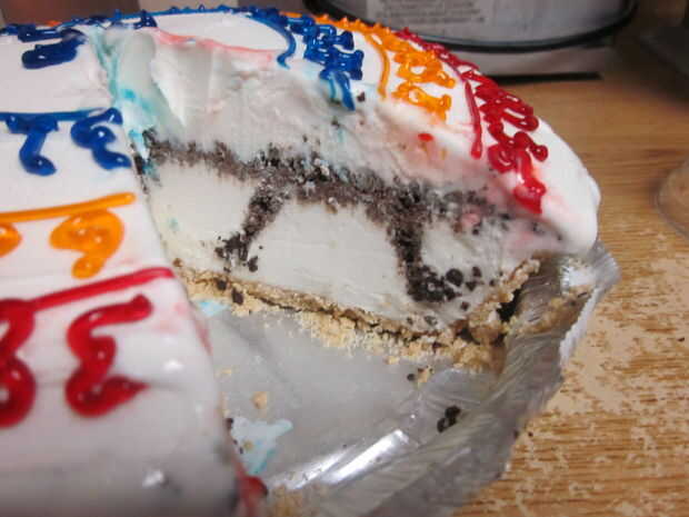 esta receta es para un pastel helado. Recientemente, mi hijo de 15 años decidió que quería un pastel de helado. Él escogió hacia fuera en la tienda y trajimos hogar. Recuerdo pastel de helado con cariño como un niño, así que decidí yo corte una re