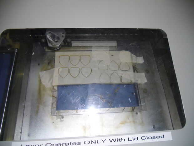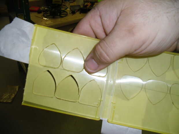 Libre de Lasercut guitarra selecciones usando Polypropyline (grupo de los fabricantes de Omaha) (3 / 4 paso)