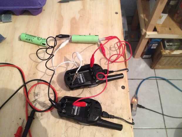 Si el voltaje es inferior a 3 de carga debe hacerse lentamente. Sugeriría que con menos de 100 mA hasta que el voltaje es más de 3 voltios. Usé algunos walkie-talkies que fueron hechas para cargar baterías recargables AAA. Conecté a través de 3 baterías para conseguir una tensión abierta de unos 6. Yo este había conectado a una pila de litio y tiene una agradable corriente de 33ma. Compruebe siempre la corriente antes de cargar. Yo uso este cargador también equilibrar las células individuales en el paquete.