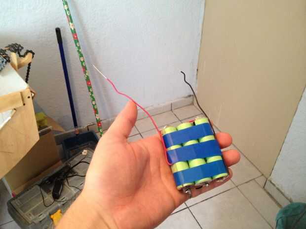 Este paso es peligroso porque accidentalmente puede conectar las pilas y corta hacia fuera. En este caso la batería se pondrá muy caliente y podría incendiarse. Es importante que no conectes el + y - de la misma batería con una carga. También conexión de baterías en serie y conectar los extremos se corta todas las pilas.