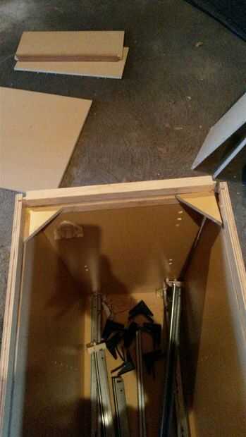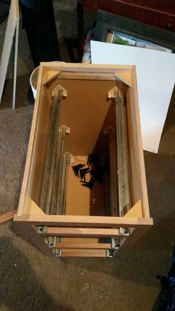 Comience con el marco frontal del gabinete. Solo le dan unos golpecitos con el martillo y debe pop fuera de la articulación. Sólo estamos luchando contra el pegamento de madera y alambre de semana pocas grapas.