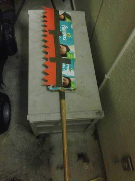 Así sucesivamente uno de mi mañana se mueva por el barrio encontré lo que parecía ser una pieza de traje de Halloween o algo sentado en una pila de basura. Tenía un mango de pala de madera y una caja de pañales. Sé que la cosa entera me hizo mirarlo torcido demasiado, pero sabía que podía usar ese mango. Conseguir casa y romper hacia abajo encontró bajo el pañal caja era una pieza de plexiglás, doble puntuación!
