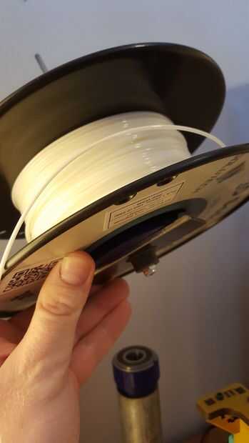 hace poco compre algunos filamentos de impresora 3D color para mis proyectos.  La bobina del filamento no encajaba en el MakerBot Replicator que tengo acceso, por lo que construí un soporte de carrete con tubo de PVC.  Este diseño tiene la bobina a u