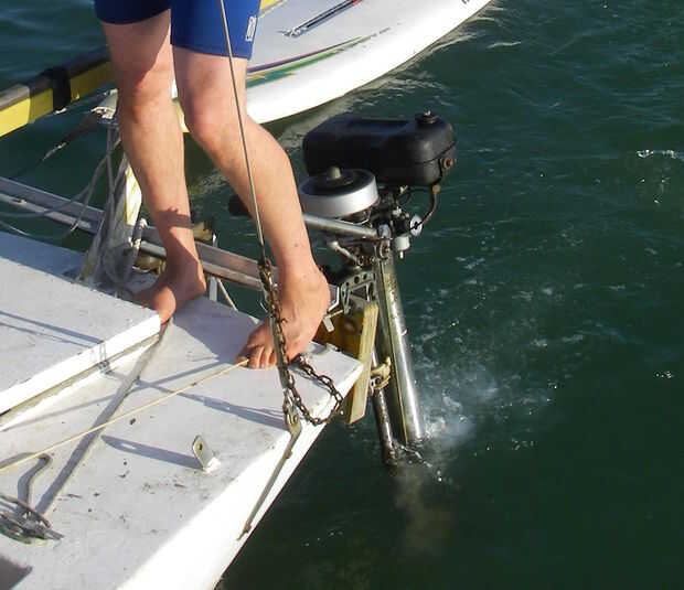 Pero llevamos un motor fuera de borda repuesto en una de las portillas de outrigger en caso que el viento se muere y el diesel falle mientras estamos fuera en el agua. Hemos tenido que utilizar dos veces el motor fuera de borda.